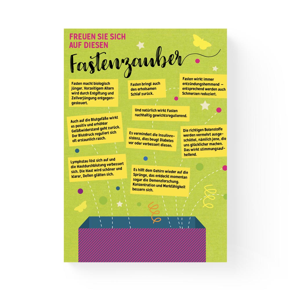 Das Buch ist mehr als ein Leitfaden – es zeigt anhand von Fallbeispielen, wie Fasten in der Praxis funktioniert und welche Erfahrungen typisch sind. Viele diätologisch bilanzierte Rezepte für Frühstück, Mittag- und Abendessen machen das Fasten abwechslungsreich und lecker. Besonders hilfreich ist ein Kapitel mit den 20 häufigsten Fastenfragen sowie ein großes Stichwortverzeichnis, das dir das Zurechtfinden erleichtert.