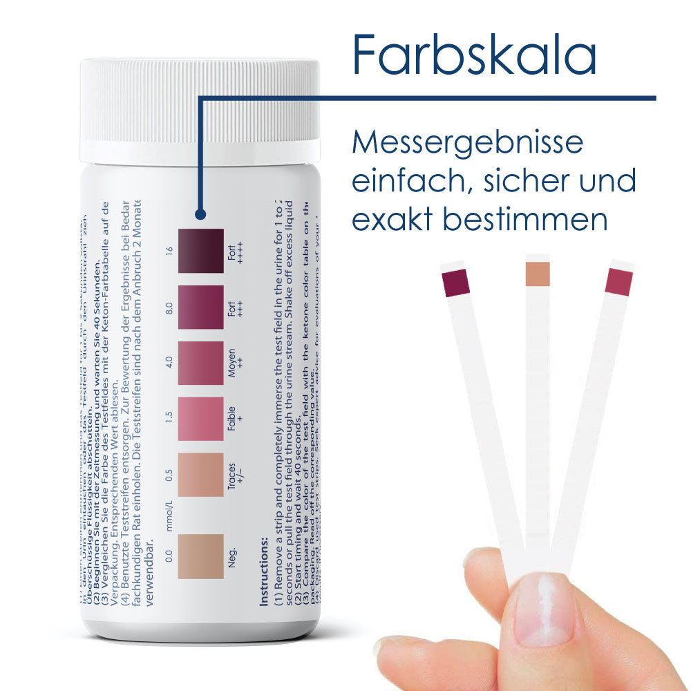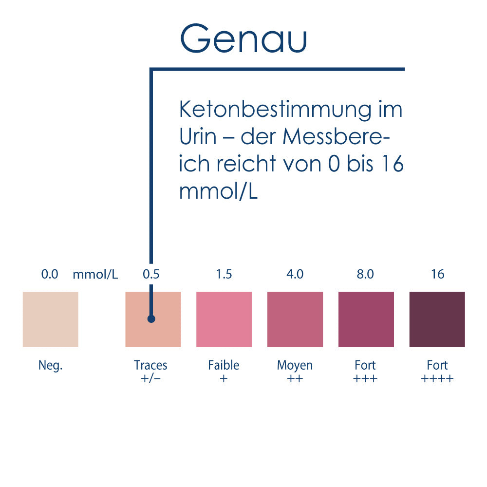 Mit ihnen kannst du schnell und einfach überprüfen, ob du in der Ketose bist. Sie messen Acetoacetat, den ersten Ketonkörper, den dein Körper während der Umstellung produziert. Dieser wird teilweise über den Urin ausgeschieden und zeigt dir klar, dass du den entscheidenden Schritt in die Ketose geschafft hast. Der Übergang dauert je nach Person zwei bis sieben Tage – mit Keto-Check kannst du diesen Moment sicher und unkompliziert verfolgen.