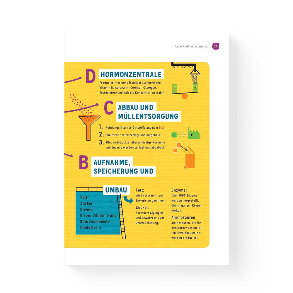Neben dem praktischen Programm bietet das Buch spannende Einblicke in die Funktionen der Leber und ihre Bedeutung für deine Gesundheit. Es erklärt, wie eine angeschlagene Leber dein Wohlbefinden beeinflusst und wie du ihre Kraft stärken kannst. Ein großes Kapitel widmet sich köstlichen, leberfreundlichen Rezepten – inklusive Einkaufsliste und leicht umsetzbaren Ideen für den Alltag.
