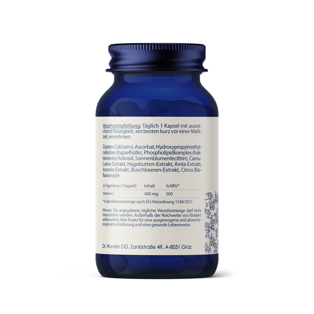 Jede Kapsel liefert 400 mg Vitamin C – das entspricht 500 % der empfohlenen Tagesdosis. Dank der speziellen Formel kann dein Körper das Vitamin besonders gut aufnehmen und verwerten.